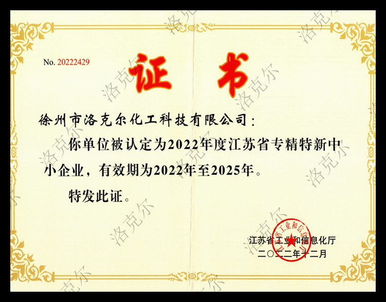 中国商业联合会科学技术奖江苏省专精特新中小企业(洛克尔)